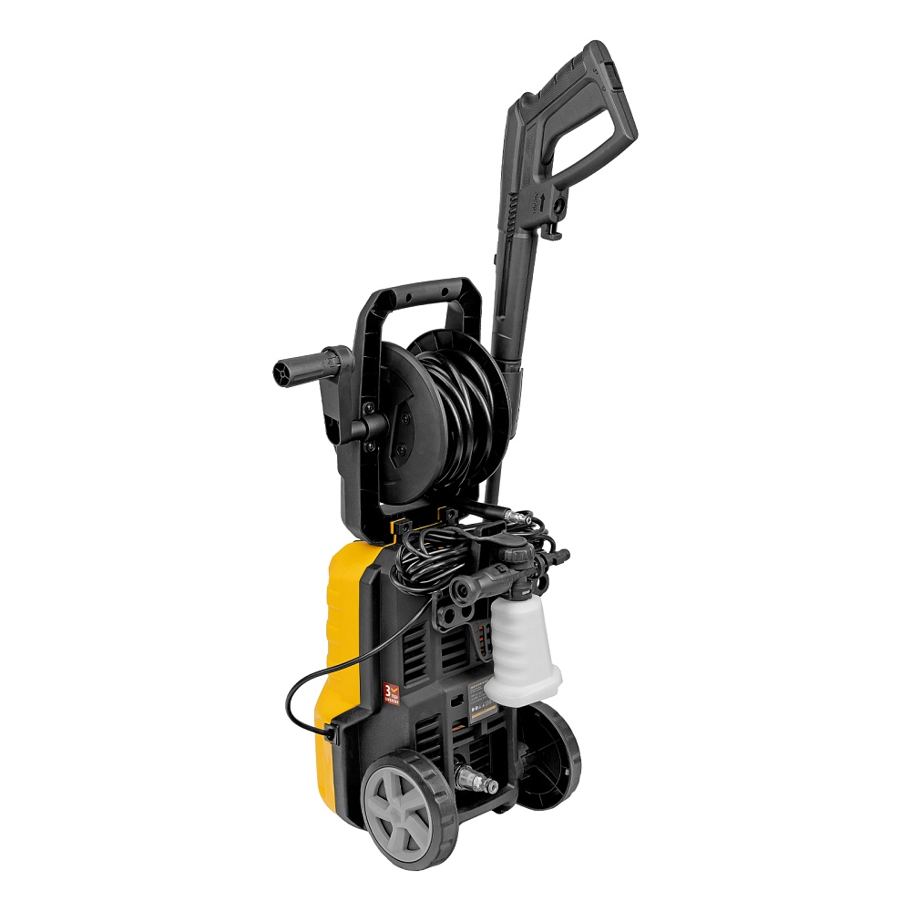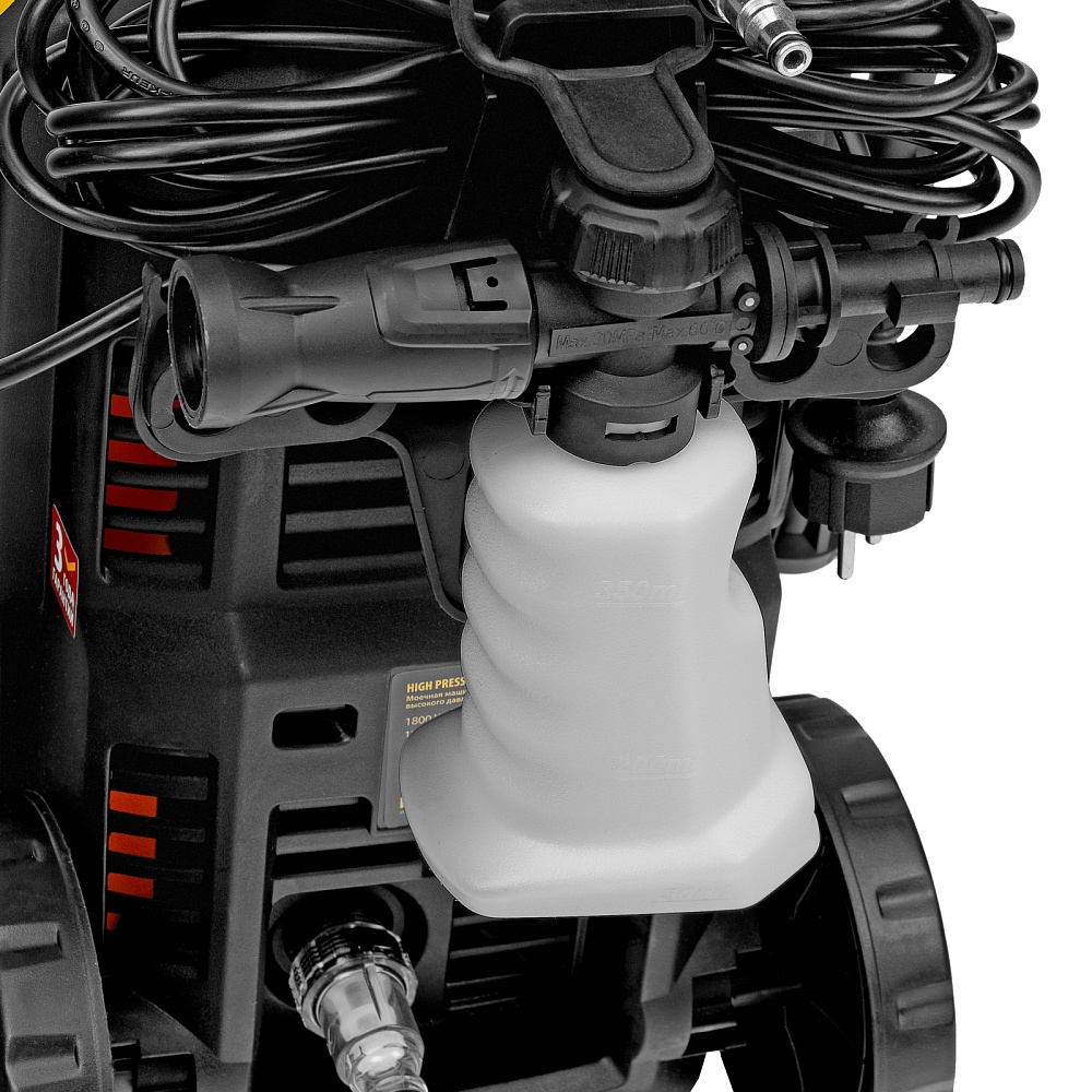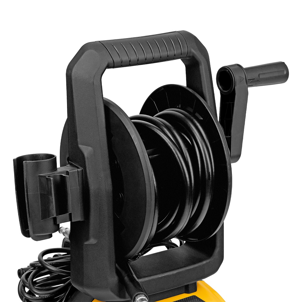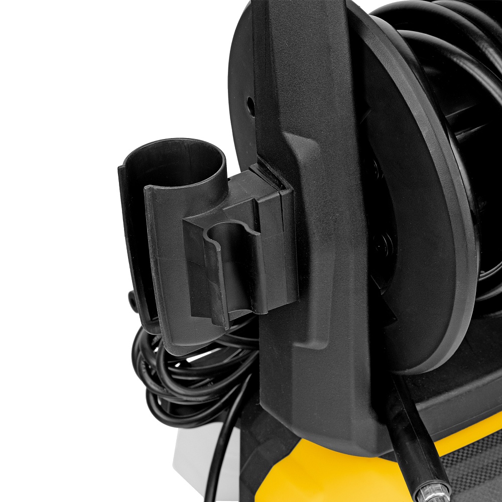 Мойка высокого давления, Барабан для шланга, Шланг высокого давления, Пистолет, Удлинитель пистолета с регулируемым соплом, Пеногенератор с бачком для моющего средства, Входной штуцер с фильтром, Быстросъемный коннектор шланга, кронштейн-держатель пистолета, Кронштей сетевого кабеля, Игла для прочистки сопла, Комплект крепежа, Инструкция с гарантийным талоном