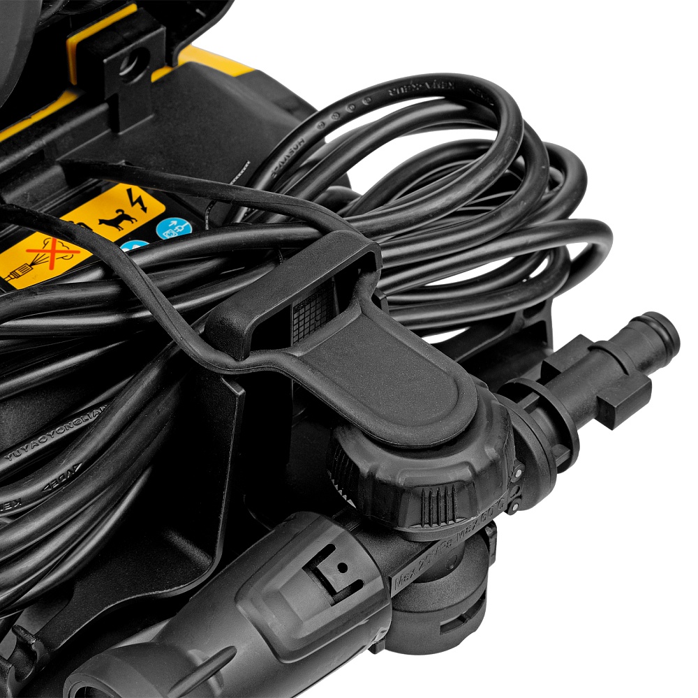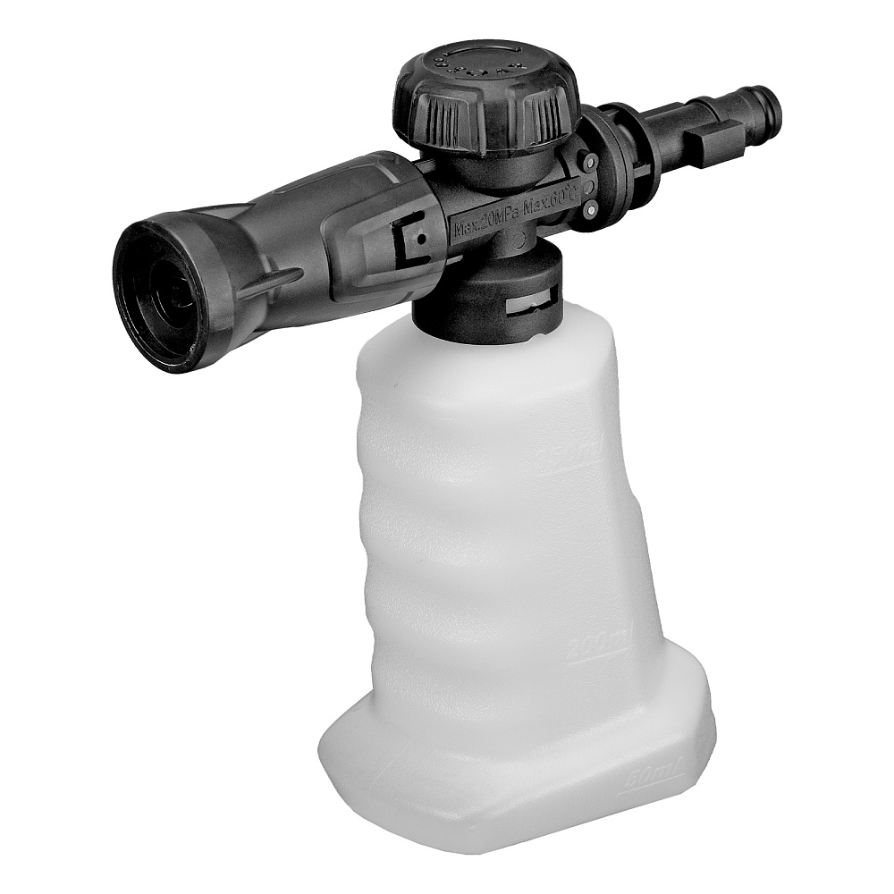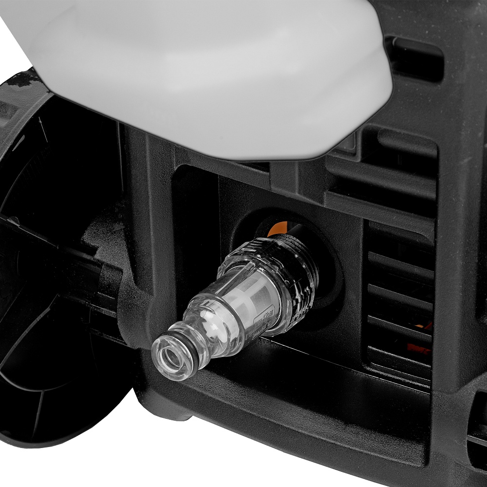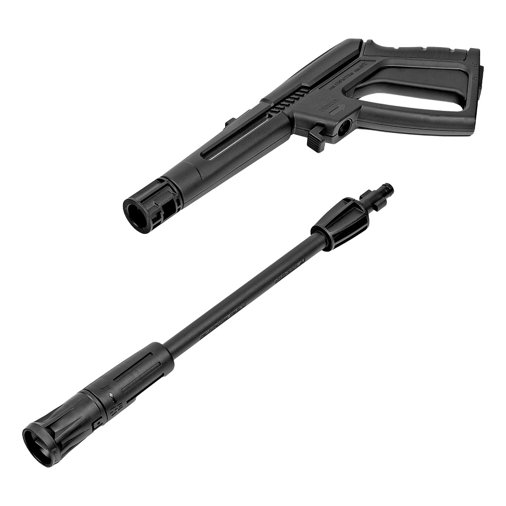 Мойка высокого давления, Барабан для шланга, Шланг высокого давления, Пистолет, Удлинитель пистолета с регулируемым соплом, Пеногенератор с бачком для моющего средства, Входной штуцер с фильтром, Быстросъемный коннектор шланга, кронштейн-держатель пистолета, Кронштей сетевого кабеля, Игла для прочистки сопла, Комплект крепежа, Инструкция с гарантийным талоном