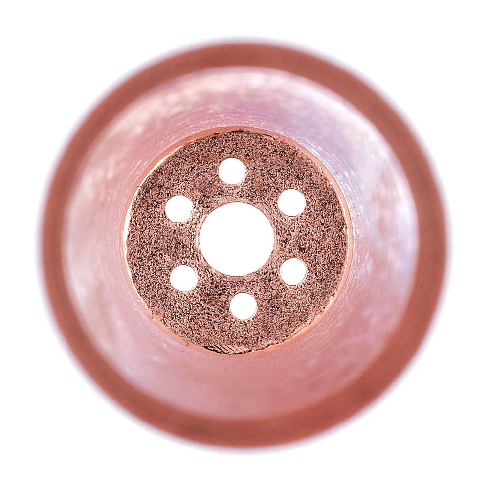 Медный наружный мундштук для пропановых инжекторных резаков Р3П, Р3ПУ и Р333. Маркировка мундштука №2П. Толщина разрезаемого металла зависит от установленного внутреннего мундштука. Совместим с внутренними мундштуками № 1П, 2П, 3П, 4П, 5П, 6П.