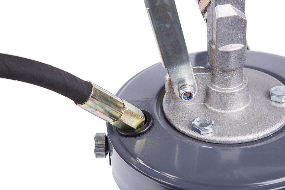 Нагнетатель солидола с ручным приводом KRW1797B представляет из себя стальную емкость объемом 5 литров с рычагом, воздействуя на который создается давление, необходимое для нагнетания густой смазки. Благодаря небольшим габаритам и рукоятке в верхней части обеспечивается мобильность и удобство использования нагнетателя в удаленных от станции техобслуживания местах. Для этого его заранее заправляют необходимым количеством смазки.