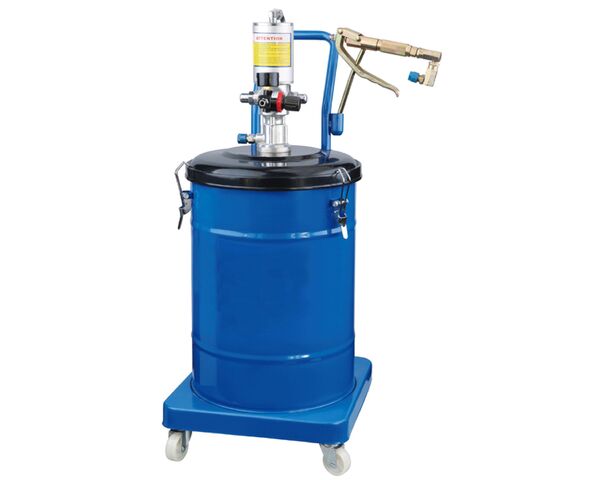Передвижное заправочное оборудование для солидола разработано для смазывания деталей автотранспорта. Модель перекачивает густую пластичную смазку до NLGI-2 за счет сжатого воздуха, который поступает из компрессора. Бочка нагнетателя вмещает до 50 килограммов солидола, она смонтирована на тележке с колесиками, поэтому ее удобно перемещать по месту эксплуатации.