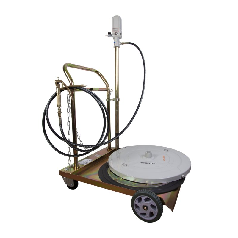 Установка монтируется на бочку вместительностью до 200 кг. Агрегат обладает шлангом и раздаточным пистолетом и пневматическим приводом. Благодаря прижимной мембране смазка в бочке защищена от воздействия внешней среды, что увеличивает ее срок службы.
