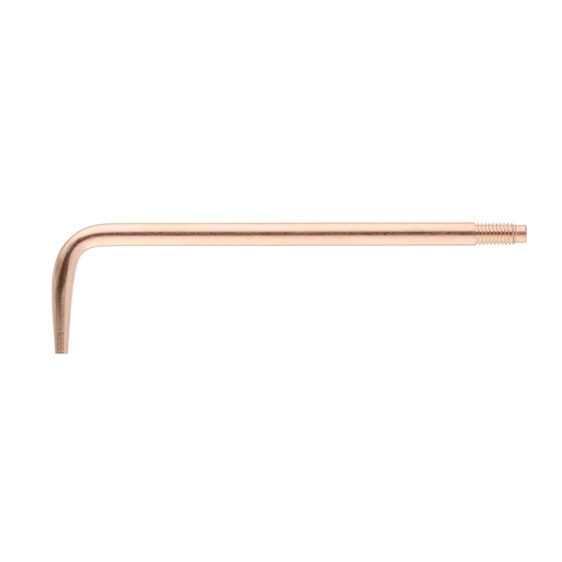 Медный цельнотянутый наконечник №2А для сварочной ацетиленовой горелки Г2А-4М-02. Предназначен для газопламенной обработки металлов толщиной 1,0–2,0 мм. Угол изгиба носика наконечника – 90°.