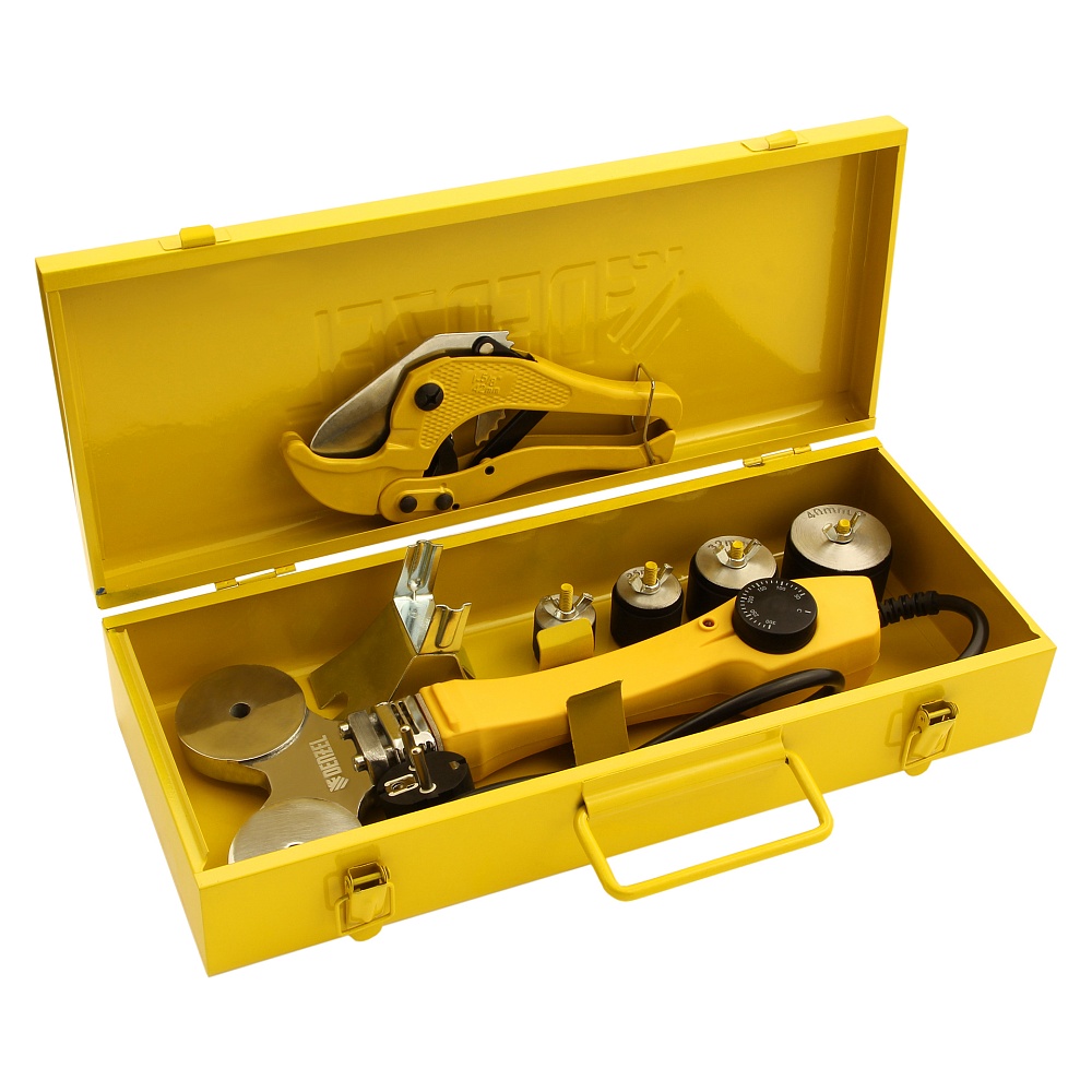 Аппарат для сварки палстиковых труб - 1 штИмбусовый ключ - 1 штТруборез - 1 штМеталлический кейс для хранения - 1 штПарные сменные насадки - 4 штРуководство по эксплуатации и гарантийный талон - 1 шт