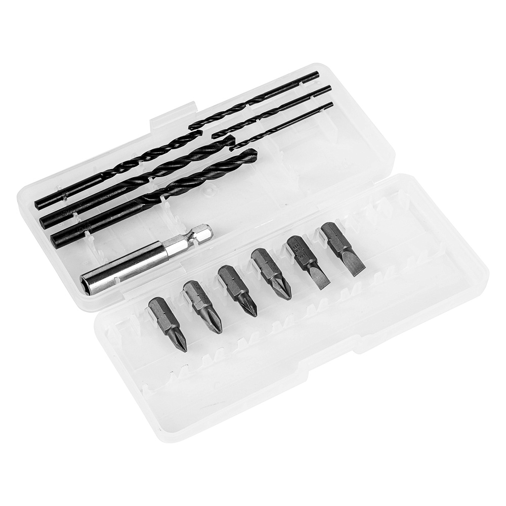 Дрель-шуруповерт аккумуляторная - 1 штБатарея аккумуляторная - 2 штУстройство зарядное - 1 штСверло спиральное по металлу - 6 штБита SL - 2 штБита PH - 2 штБита PZ - 2 штАдаптер магнитный для бит - 1 штКейс для хранения - 1 штРуководство по эксплуатации с гарантийным талоном - 1 шт