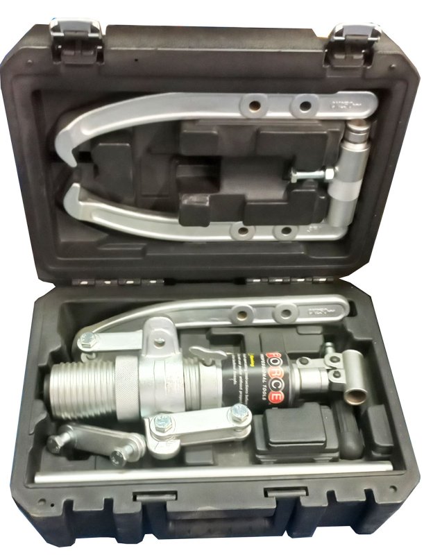 Съемник двух-трехлапый переставной гидравлический Rock FORCE RF-6590615H (артикул 16134) в пластиковом кейсе, используется для снятия подшипников.