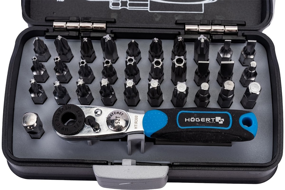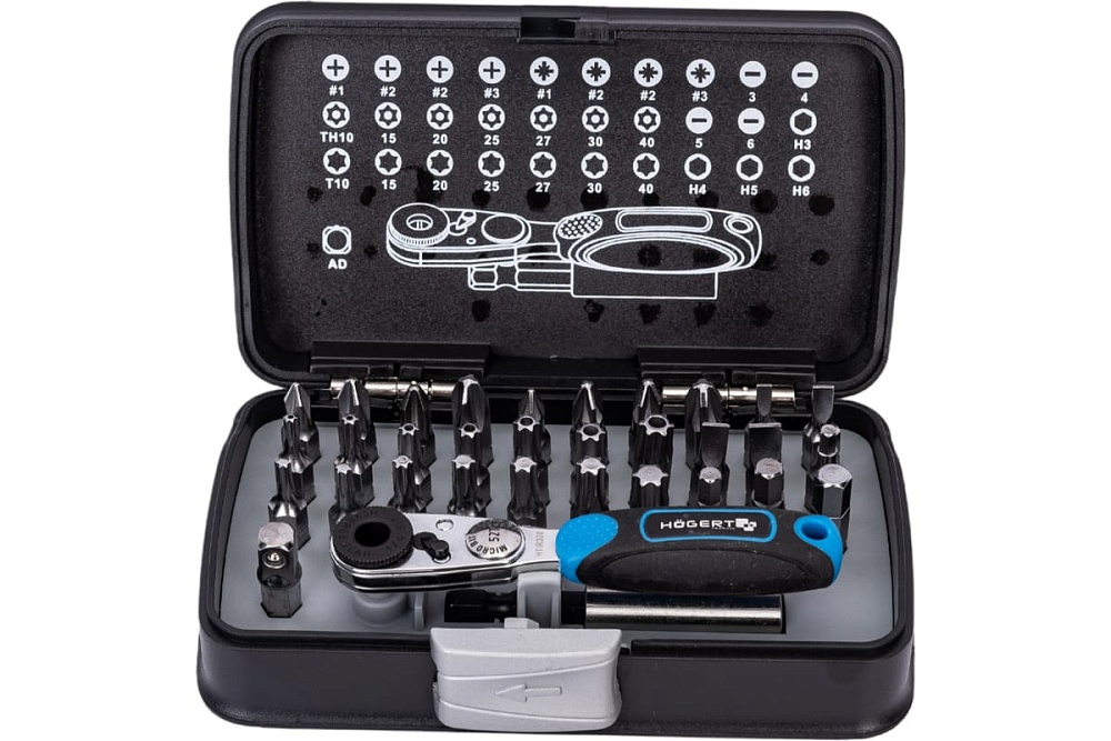 HOEGERT Набор бит с трещоткой 1/4", SL, PH, PZ, HEX, Torx, Torx c отверстием, 33 шт. купить в Самаре цена ✅ - Все для СТО