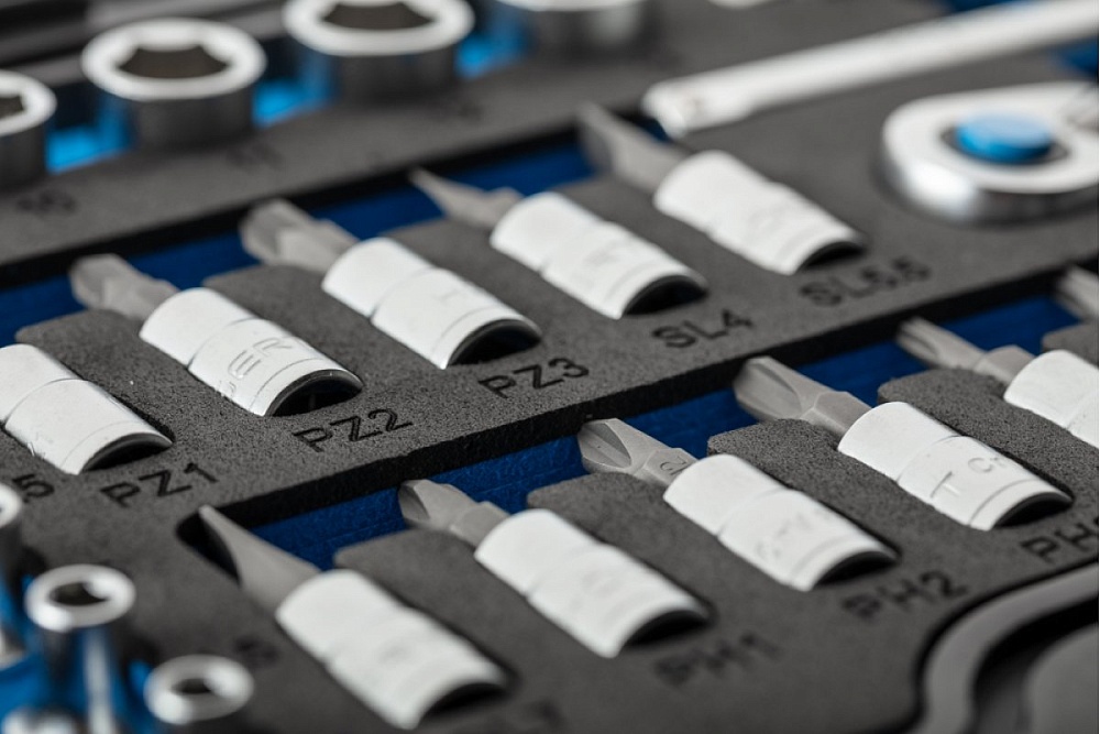Набор торцевых головок, отверточных битов, аксессуаров 1/4”.