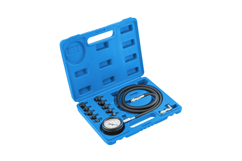 Тестер давления масла позволяет точно измерять давление масла в бензиновых и дизельных двигателях. Легко читаемая двойная шкала на манометре позволяет легко считывать результат измерения. Индикатор изготовлен из устойчивых к повреждениям, но легких материалов. Кроме того, стекло индикатора закрыто амортизирующим резиновым чехлом. Детали оснащены быстросъемными соединениями для легкой и быстрой установки. В основном используется на СТО.