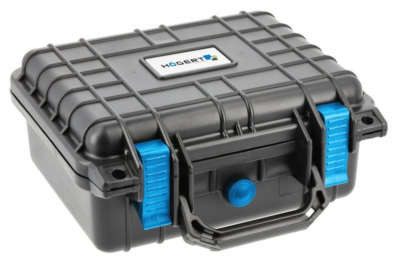 Плотный, водостойкий, пыленепроницаемый и ударопрочный герметичный чемодан Högert Technik, предназначенный для хранения инструментов, фотографического, оптического, лазерного измерительного оборудования, электроинструментов, оружия или рыболовного снаряжения.
