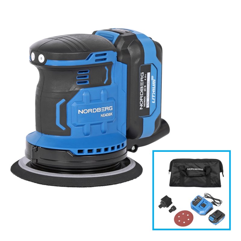 Шлифовальная орбитальная аккумуляторная машина NORDBERG NE436K – специальный инструмент для выполнения большого спектра шлифовальных работ в профессиональном и домашнем использовании.