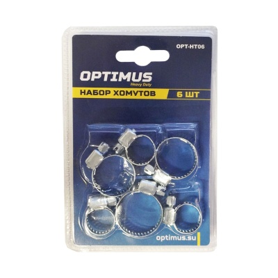 OPT-HT06 Хомуты червячные набор 6шт. 10-27 OPTIMUS купить в Самаре цена ✅ - Все для СТО