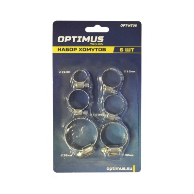 OPT-HT08 Хомуты червячные набор 6шт. 10-38 OPTIMUS купить в Самаре цена ✅ - Все для СТО