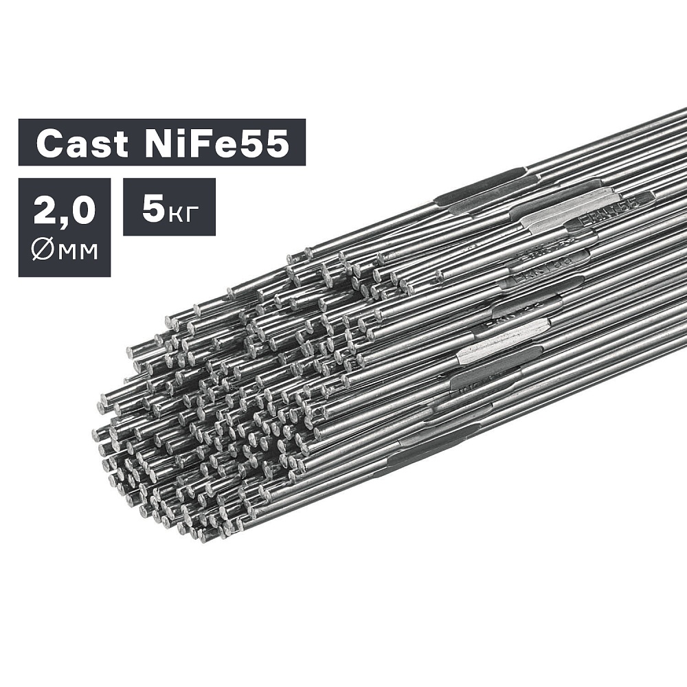 Присадочный пруток Cast NiFe55 диаметром 2,0 мм используется для аргонодуговой сварки TIG ковкого и серого чугуна. Поставляется в пластиковой тубе по 5 кг.