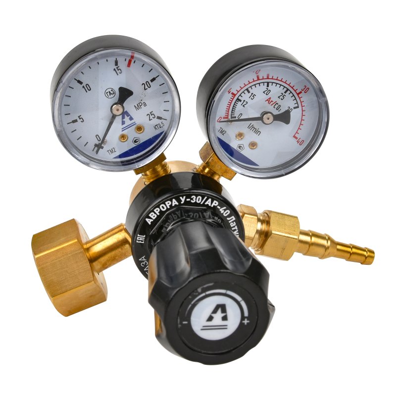 Регулятор расхода газа АВРОРА У-30/АР-40 Латунь предназначен для понижения и точного регулирования давления газа, поступающего из баллона, с автоматическим поддержанием заданного рабочего давления. Обеспечивает стабильную работу сварочных постов полуавтоматической и аргонодуговой сварки.