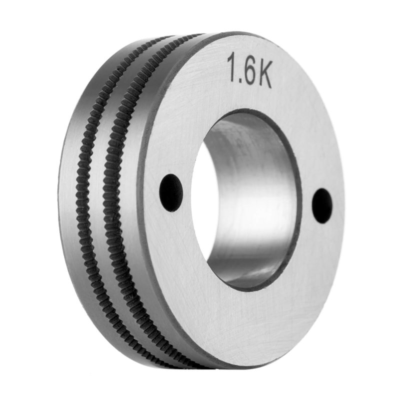 Ролик подающего механизма для сварочных полуавтоматов ПТК RILON MIG 500 DP TITAN, ПТК RILON MIG 500 DF. Это сменный элемент подающего механизма, который подбирается в соответствии с видом сварочной проволоки и ее диаметром. Данные ролики предназначены для работы с порошковой проволокой диаметром 1,2–1,6 мм. Размер роликов 37х19х12 мм. Подающие ролики имеют канавки K-образной формы. При изменении сечения проволоки необходимо перевернуть ролик нужной стороной и использовать его далее.