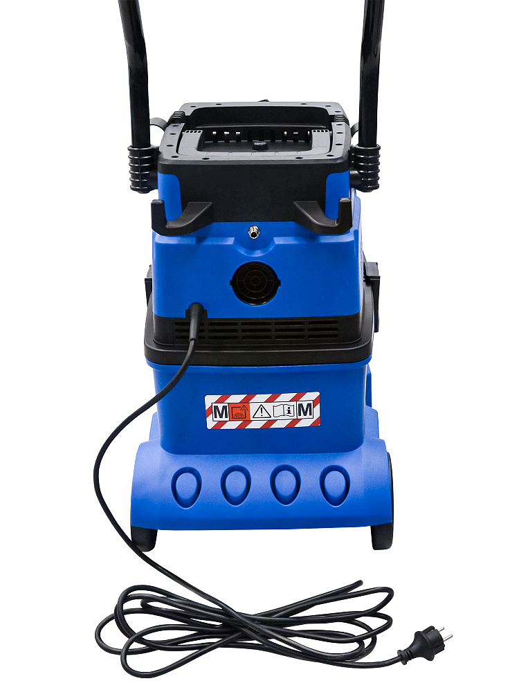 • пылесос на 4-колесном шасси в сборе с сетевым кабелем длиной 4.9 м, рукояткой, панелью управления и баком на 40 л;