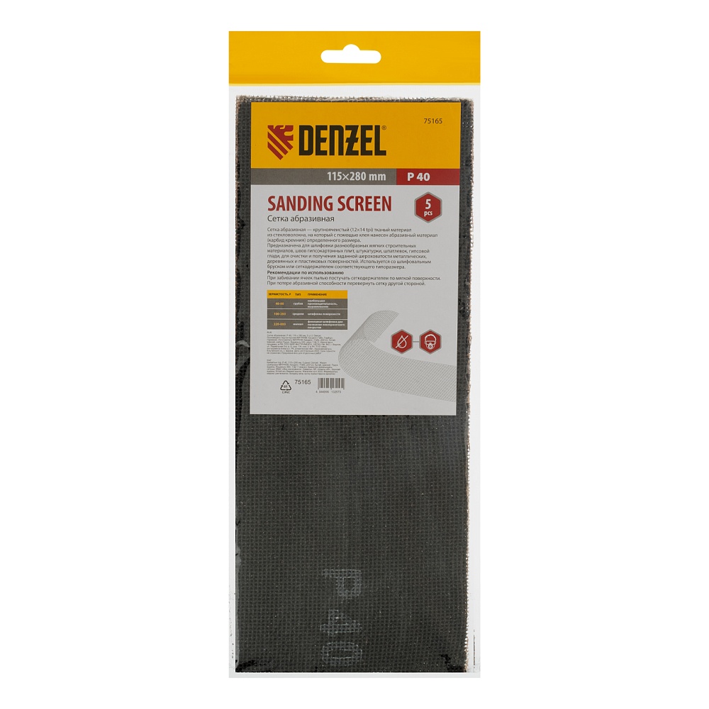 Сетка абразивная, P 40, 115 х 280 мм, 5 шт Denzel