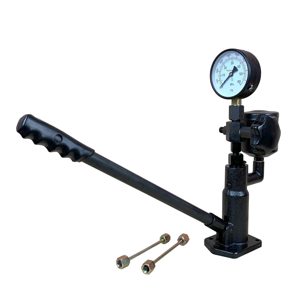 Принцип работы стенда для проверки дизельных форсунок PS-400A следующий: налейте топливо в емкость, закрепите  форсунку на тестере, создайте давление с помощью ручного насоса. При этом производится визуальный контроль факела распыла, а по манометру давления – открытие форсунки.