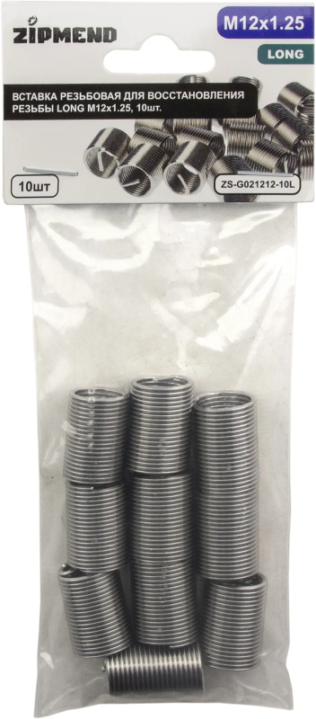 Вставка резьбовая для восстановления резьбы LONG M12 х 1.25, 10 штук, ZIPMEND, ZS-G021212-10L.