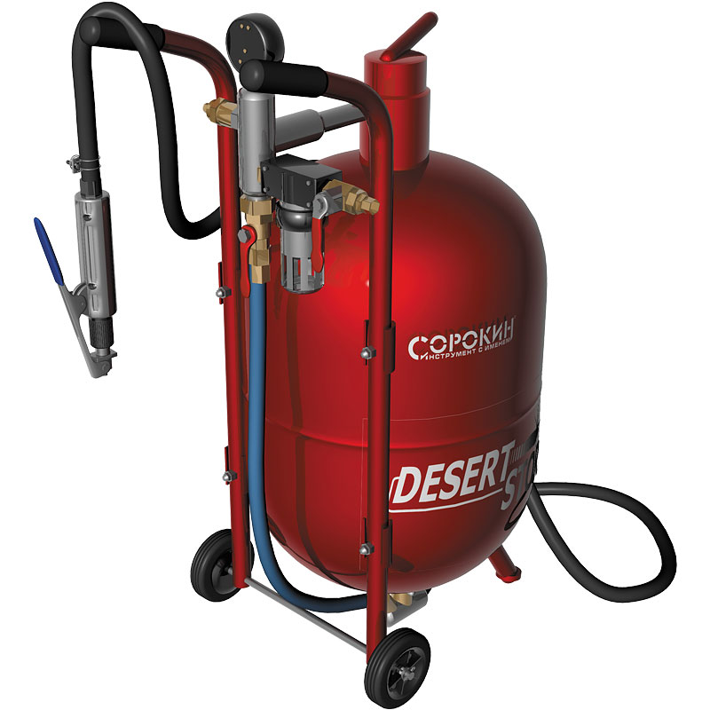 Пескоструйный аппарат Сорокин 10.6 - устройство с большим резервуаром, которое применяется для воздушно-пескоструйной очистки различных поверхностей от окалин, ржавчин, нагара и слоя старого покрытия, а также для подготовки к антикоррозионному покрытию и для матирования стекла.
