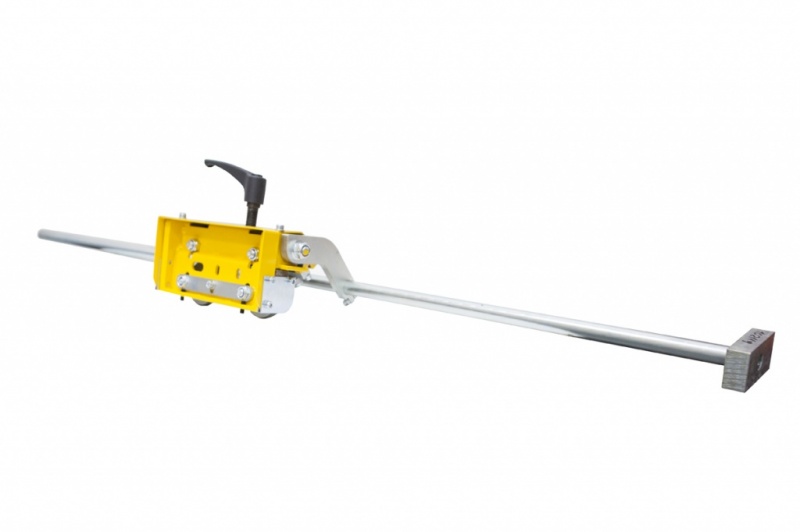 Упор представляет из себя роликовый корпус, направляющий стержень, рукоятка, 2ух метровая мерная линейка с клеевым покрытием.