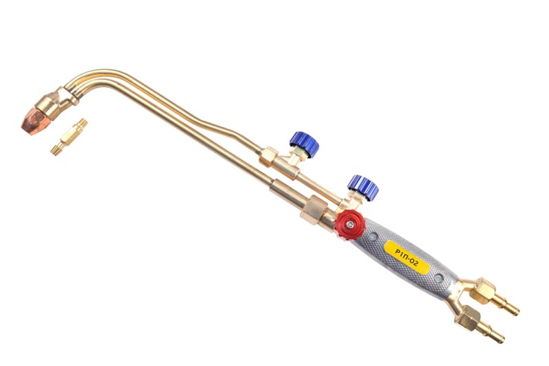 Универсальный 3-х трубный резак с возможностью реза металла толщиной до 300 мм. Длина резака 900 мм, угол наклона мундштука 110°.