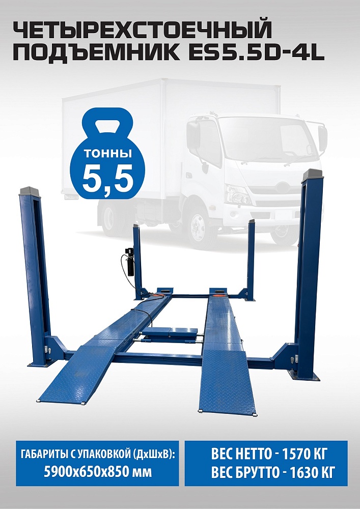 ES5.5D-4L Подъемник 4-хст. г/п 5,5 т, 380 V с траверсой 2,0 т купить в Самаре цена ✅ - Все для СТО