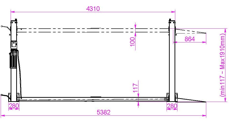 KRW4FPL+KRW-HLP32 KraftWell Подъемник четырехстоечный, электрогидравлический, г/п 4000 кг., 2,2 кВт, высота подъема 1910 мм., размеры платформ 4310х480 мм, платформы - гладкие. В комплекте с траверсой г/п 2 т.
