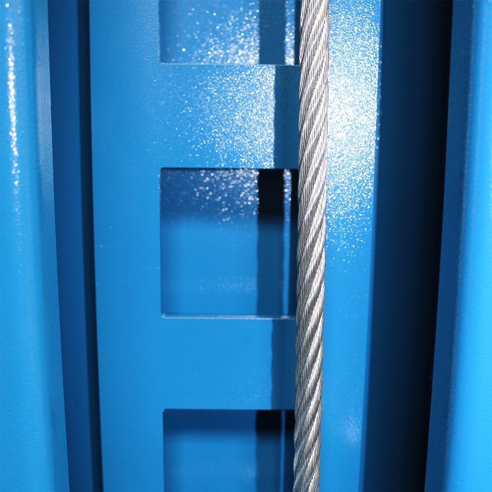 Каретки приводятся в действие гидравлическим цилиндром и системой стальных тросов. Оборудование имеет низкий уровень шума.