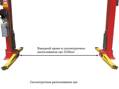 Двухстоечный электрогидравлический подъемник асимметричной конструкции с нижней синхронизацией. Снятие с замков безопасности ручное отдельно на каждой стойке.