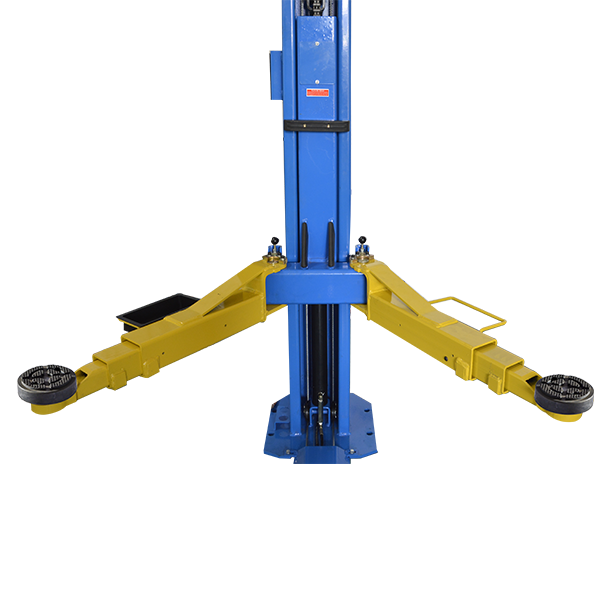 Двухстоечный электрогидравлический подъемник с нижней синхронизацией, грузоподъемность 4.5 т, механическое управление стопорами на одной колонне, цепной привод