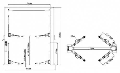 Двухстоечный электрогидравлический подъемник  г/п 4т Launch TLT-240SC с верхней синхронизацией и  симметричным или ассиметричным расположение стоек по выбору пользователя.