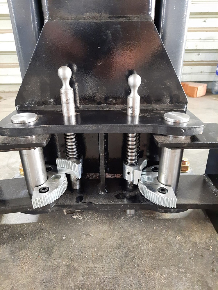 Двухстоечный электрогидравлический подъемник с верхней синхронизацией KRAFTWELL KRW4ELH оснащается каретками с лапами, расположенными внутри каретки. Зубчатые сегменты, предотвращающие поворот лап в поднятом состоянии, так же находятся внутри. Короткие лапы имеют длину 750-1140 мм, длинные 750-1180 мм. Все лапы у данного подъемника двухсекционные.