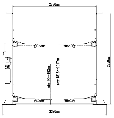 Двухстоечный электрогидравлический подъемник 4 т. с нижней синхронизацией.