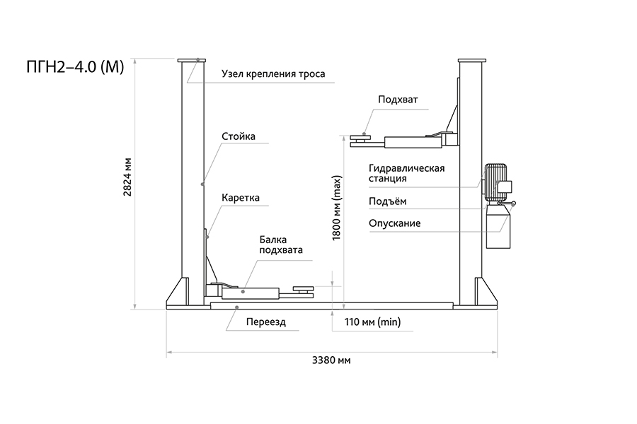 ПГН2-4.0(М) Станкоипорт Подъёмник 2-х стоечный 4.0т, 220В купить в Самаре цена ✅ - Все для СТО