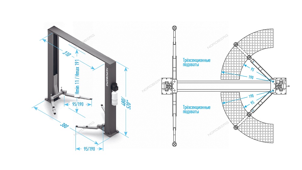 NORDBERG N4122H1E-6B_380 — двухстоечный подъёмник 6 т HIGH, верхняя синхронизация, питание 380 В.