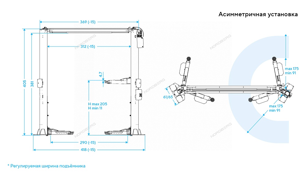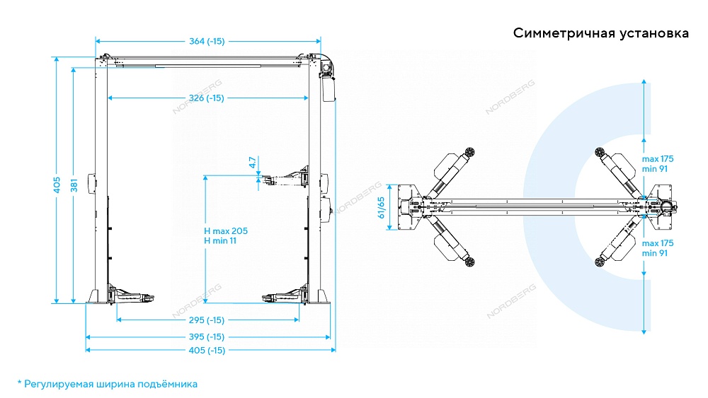 Подъемник двухстоечный 4,5 т, верхняя синхронизация, 380 В, серый NORDBERG N4125H-4,5G купить в Самаре цена ✅ - Все для СТО