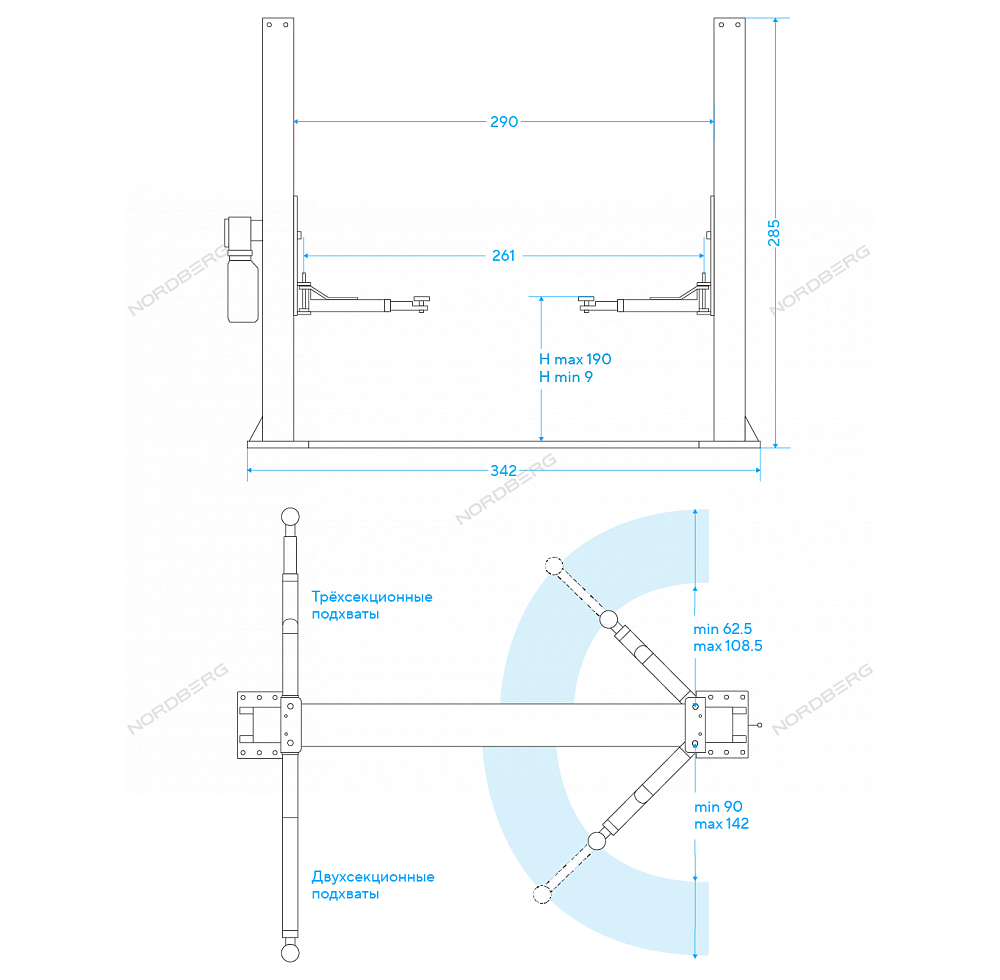 Подъемник двухстоечный 4 т, 380 В, серый NORDBERG N4120B-4G_3+2_380 купить в Самаре цена ✅ - Все для СТО