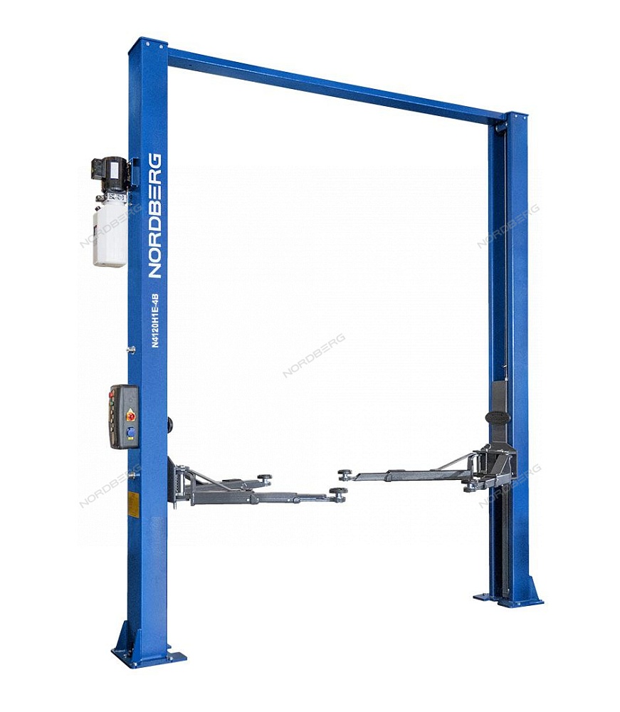 Подъемник двухстоечный 4 т, верхняя синхронизация, с электростопорами, H=4 м, 380 В, синий NORDBERG N4120H1E-4B_3+2_380