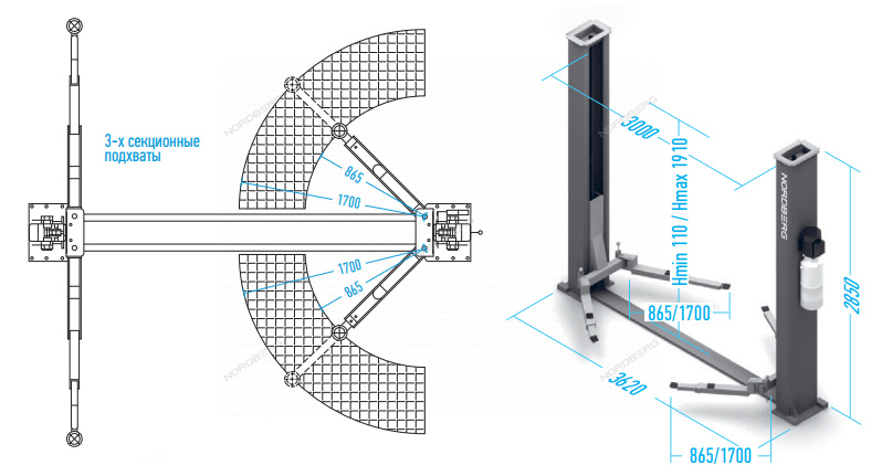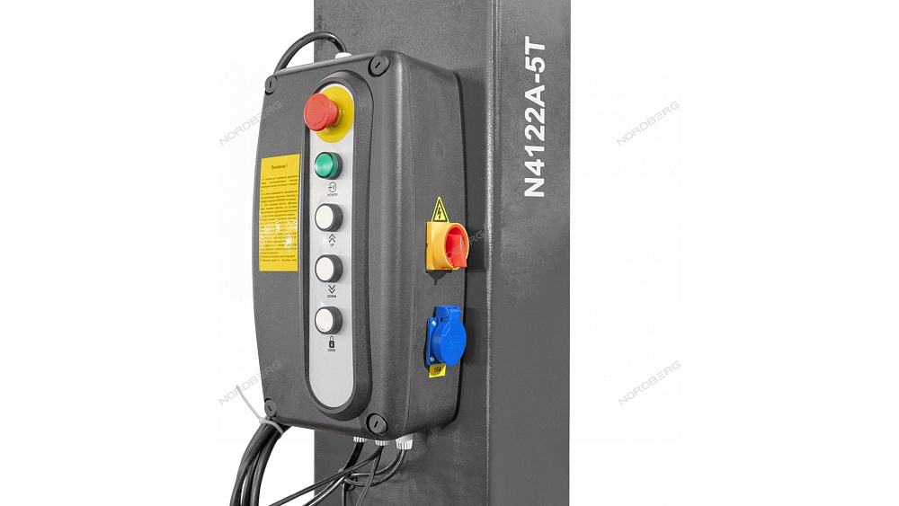 Подъемник двухстоечный 5 т, нижняя синхронизация, с электростопорами, 380 В, серый NORDBERG N4122AE-5G_380
