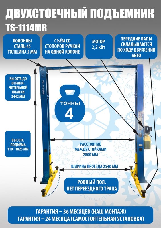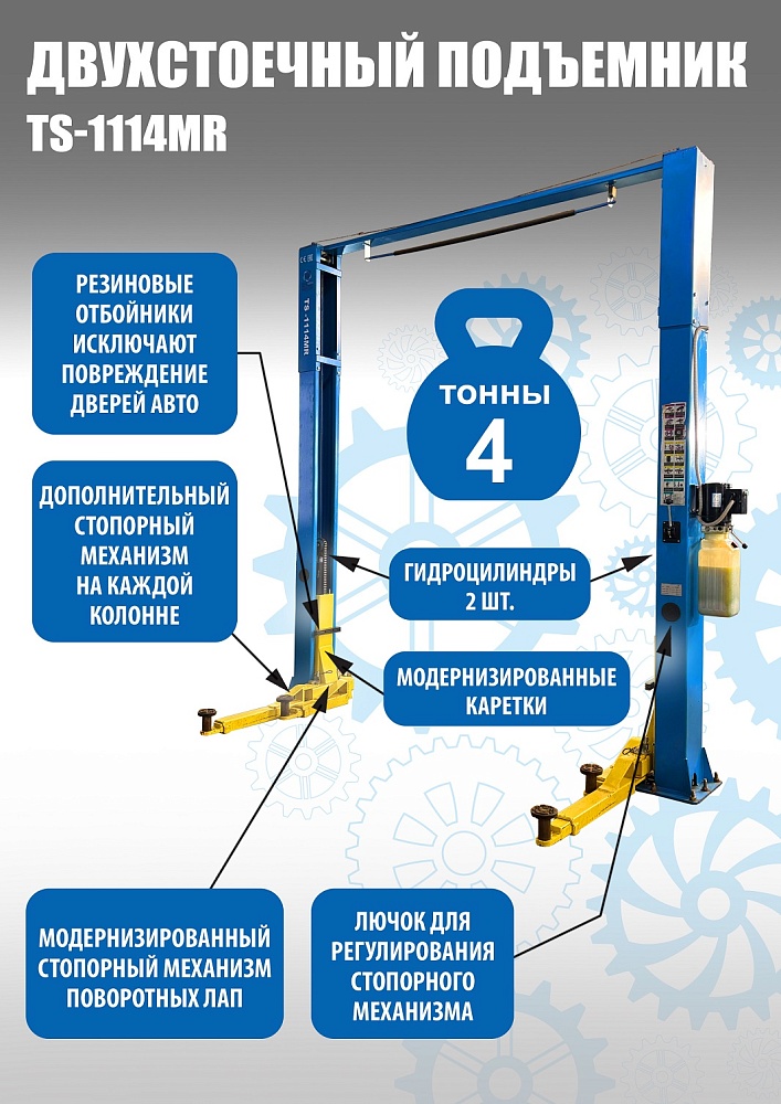TS-1114MR подъемник 4 т, 2-х ст. электрогидравлический (2025) (380 V ТВ) купить в Самаре цена ✅ - Все для СТО