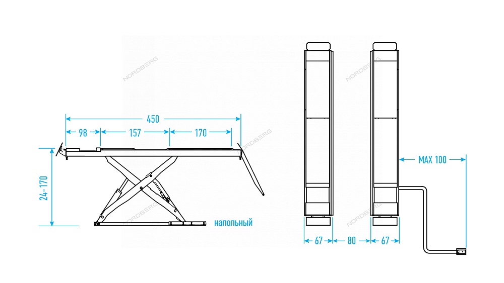 NORDBERG ПОДЪЕМНИК N634-4 ножничный для сход-развала, напольный 4 т, 380 В купить в Самаре цена ✅ - Все для СТО