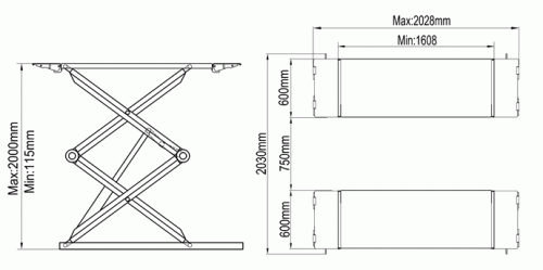 Ножничный напольный подъемник, грузоподъемность 3.0 т., высота подъема 1850 мм., двойные ножницы короткая платформа 1608-2028 мм.