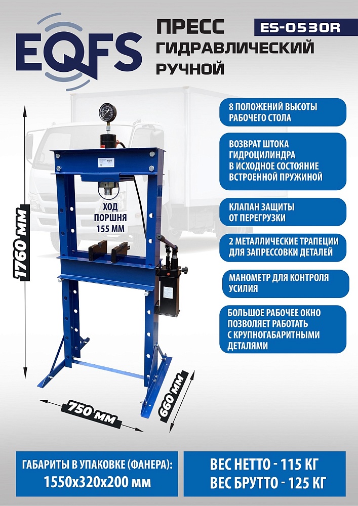 ES-0530R Пресс гидравлический ручной, 30 тонн купить в Самаре цена ✅ - Все для СТО