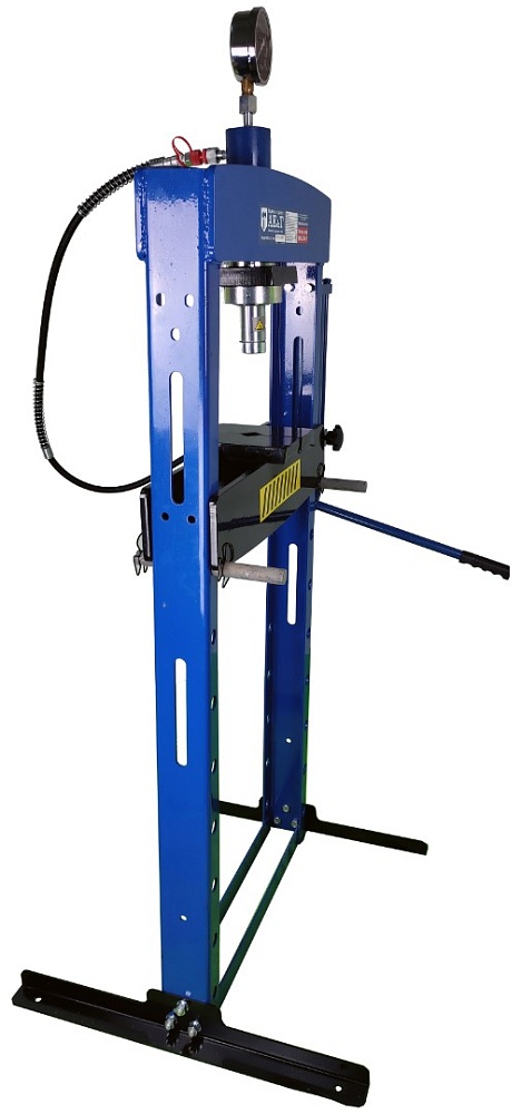 Данная модель отлично подойдёт СТО и сервисам любого уровня, потому что сочетает в себе простоту эксплуатации, относительно небольшие габариты, прочность сварной рамы, удобный смещаемый по горизонтали цилиндр, что позволяет более точно выполнять демонтаж, выпрессовку, запрессовку запчастей. Ухватистая ручка с большим диапазоном движения позволяет комфортно и без больших усилий проводить работы.