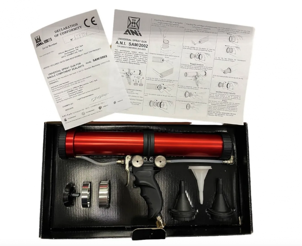Пистолет пневматический универсальный для нанесения однокомпонентных распыляемых и нераспыляемых герметиков в картриджах и тубах KIT/SAM/2002 11/A, арт. № AH095701, Ani horex
