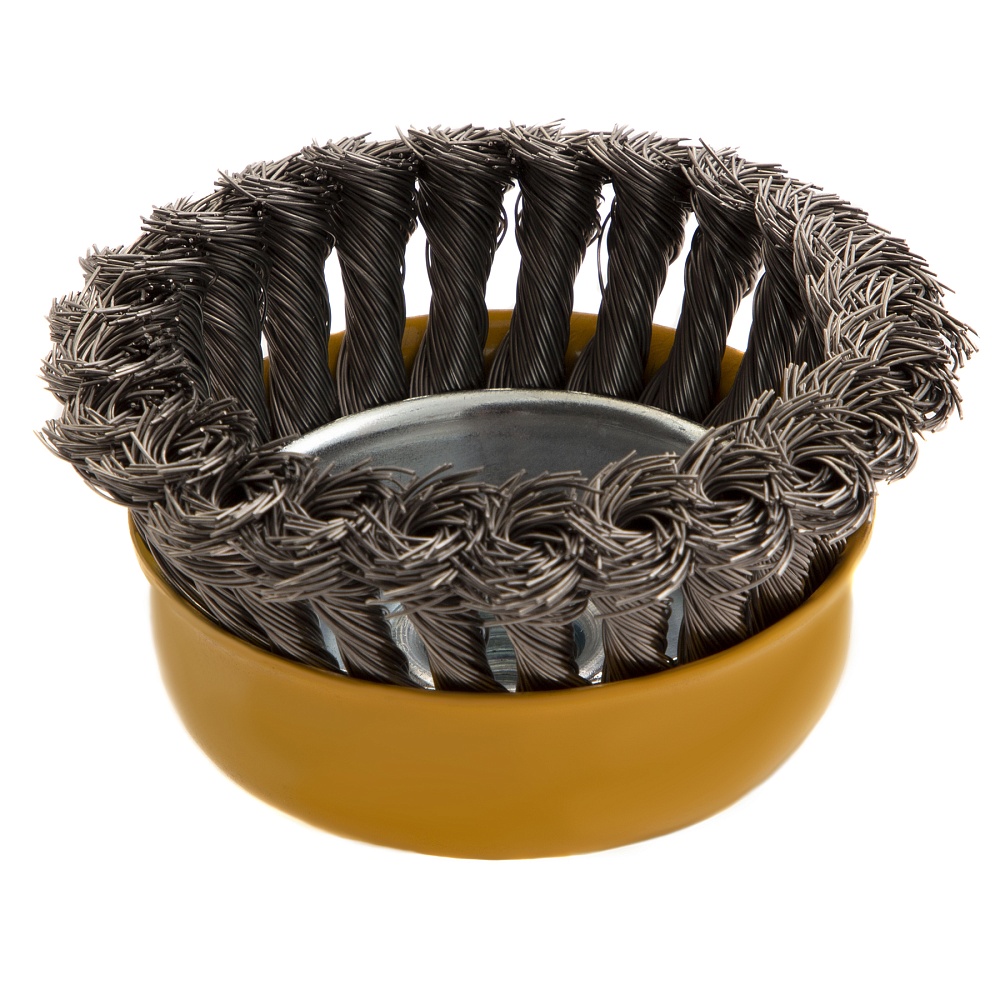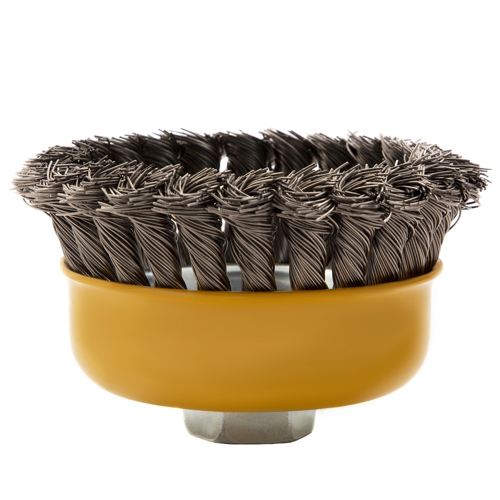 Щетка для УШМ, 100 мм, "Чашка", крученая нержавеющая проволока 0.5 мм, М14 Denzel купить в Самаре цена ✅ - Все для СТО