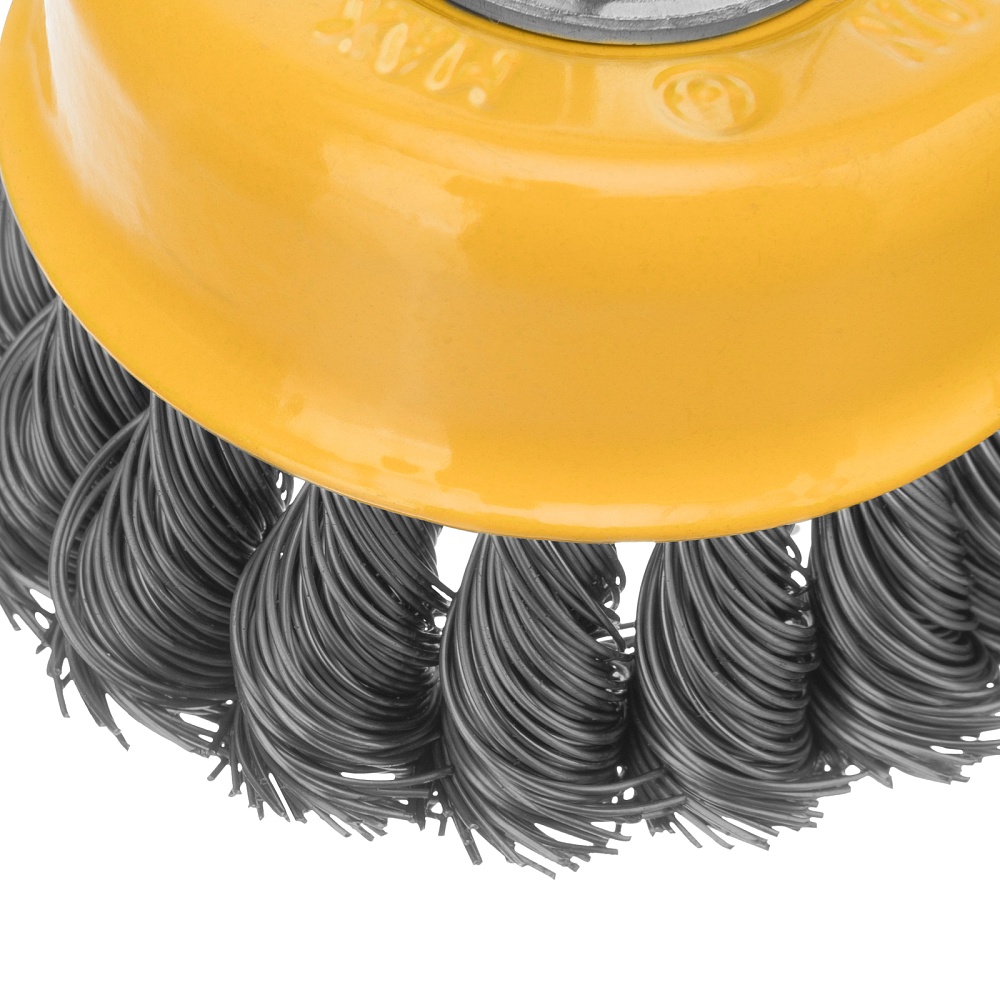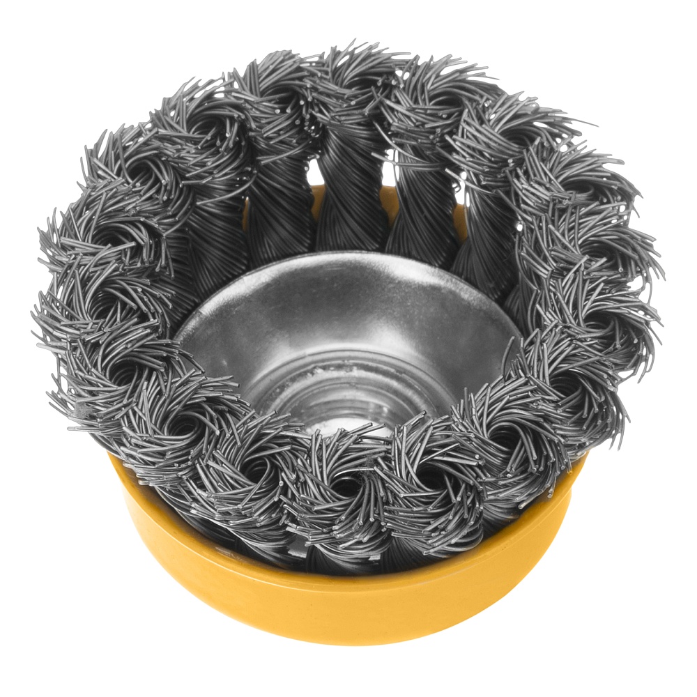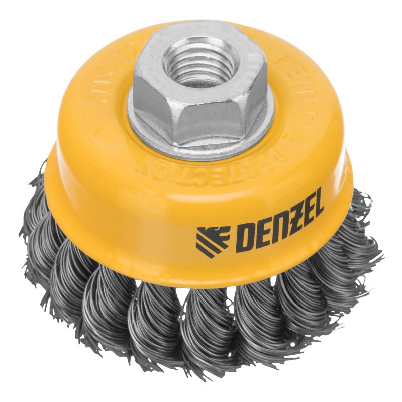 Щетка для УШМ, 75 мм, "Чашка", крученая нержавеющая проволока 0.5 мм, М14 Denzel купить в Самаре цена ✅ - Все для СТО