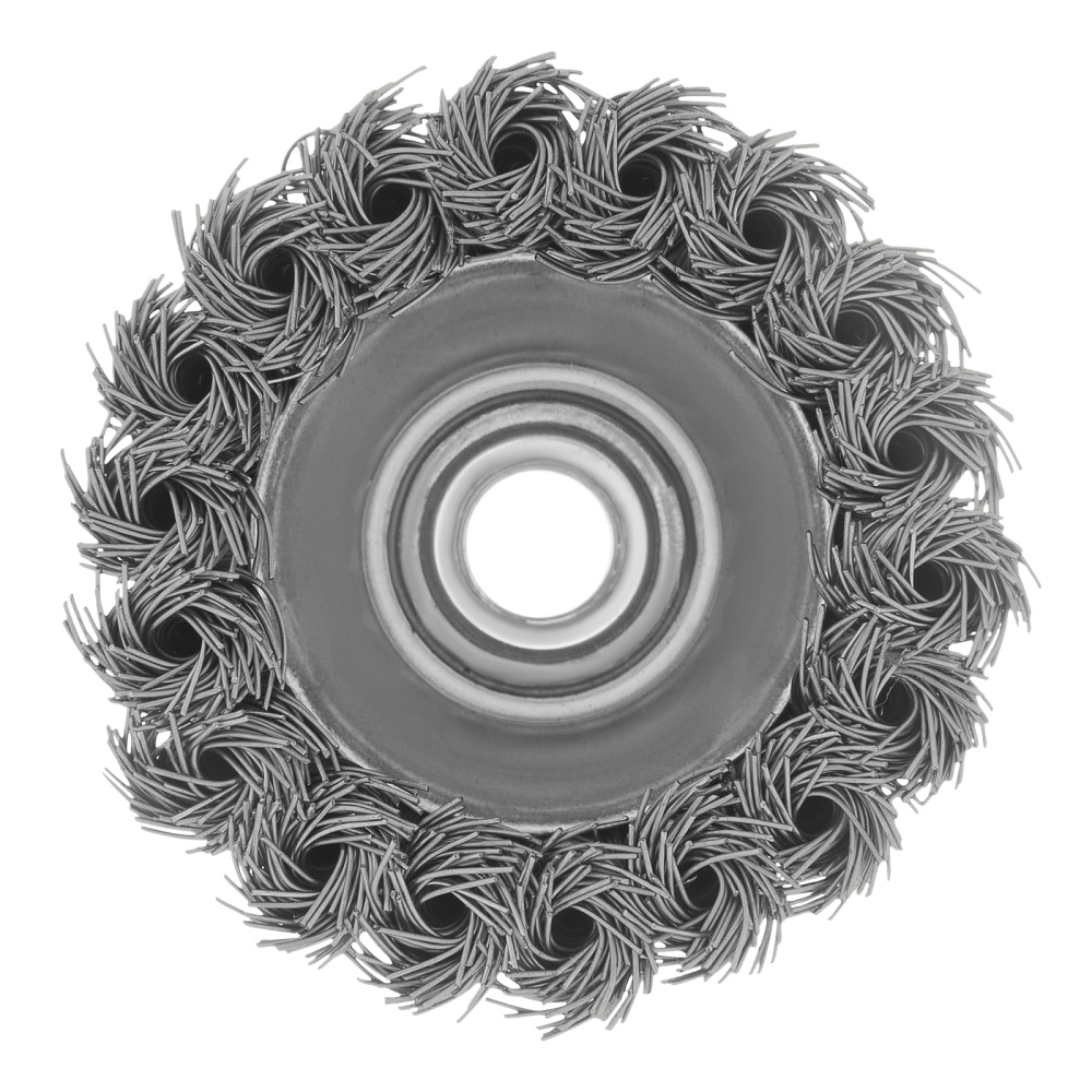 Щетка для УШМ, 75 мм, "Чашка", крученая нержавеющая проволока 0.5 мм, М14 Denzel